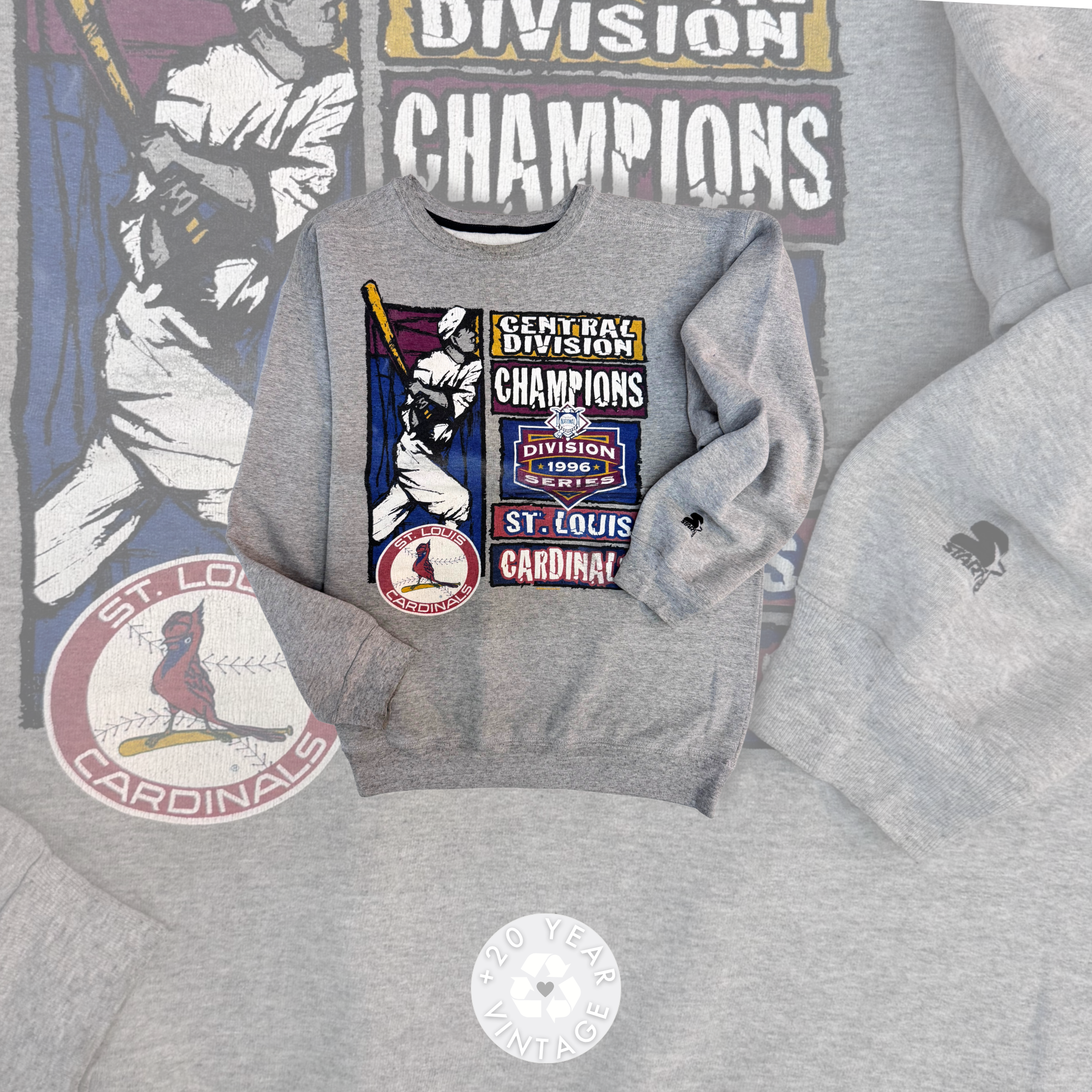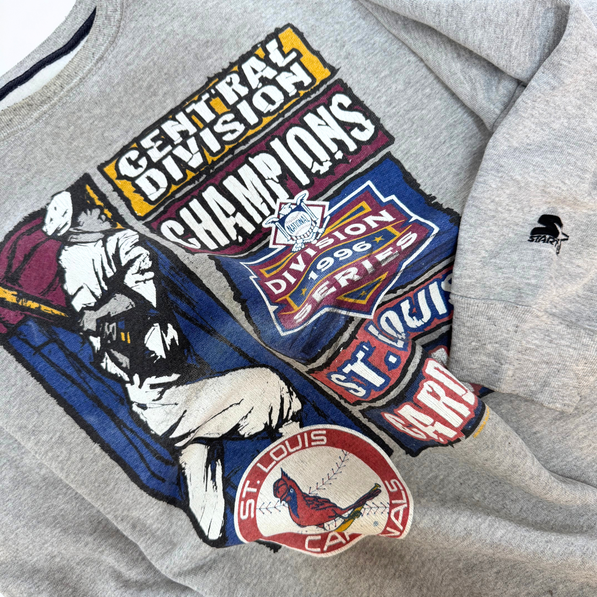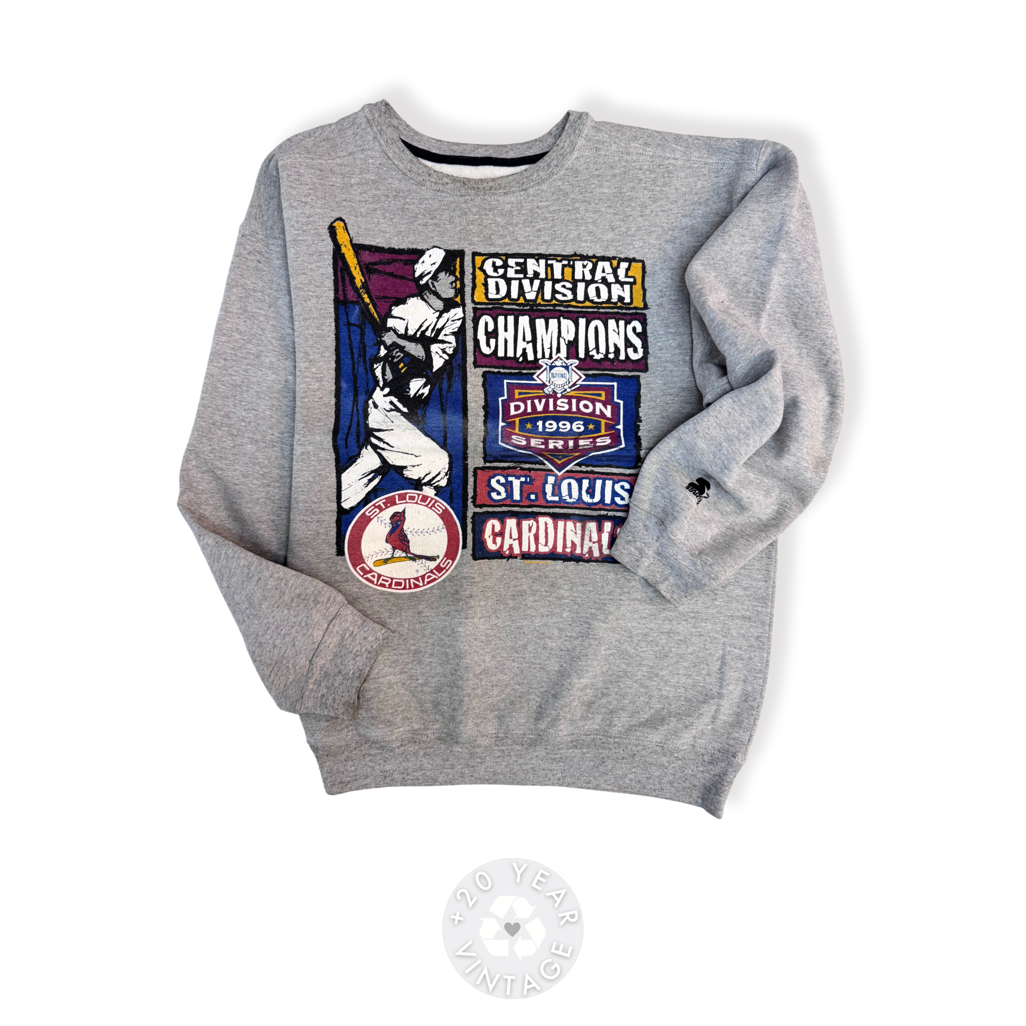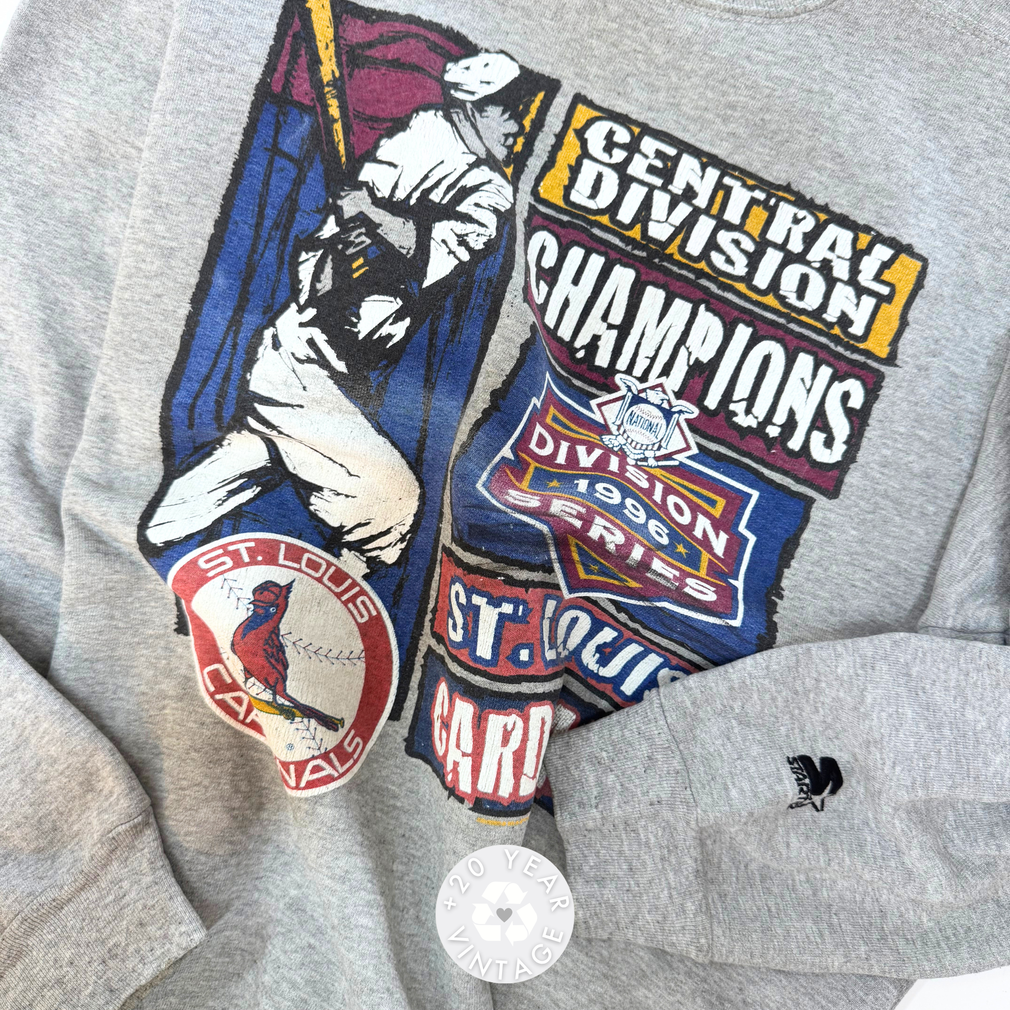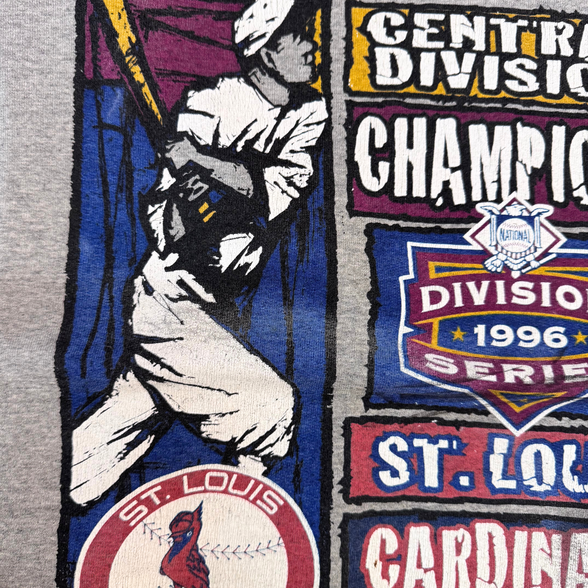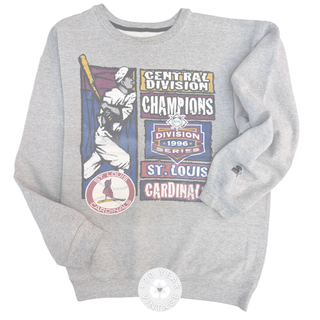Vintage St. Louis Cardinals Central Division Champions 1996 sweatshirt with bold front graphic and classic baseball motif.