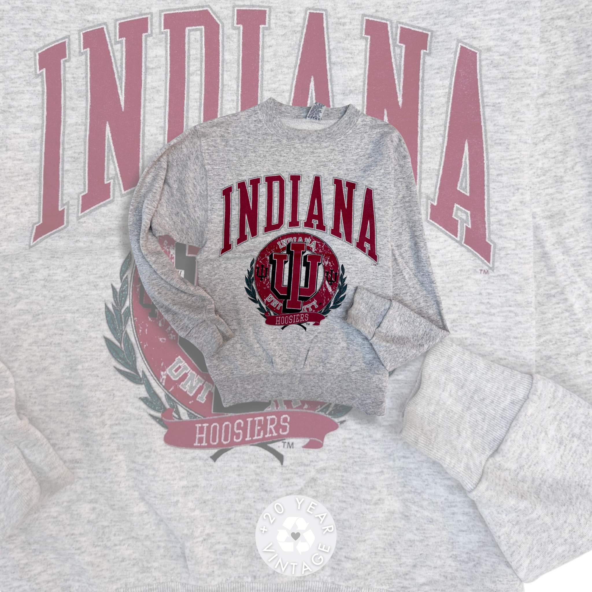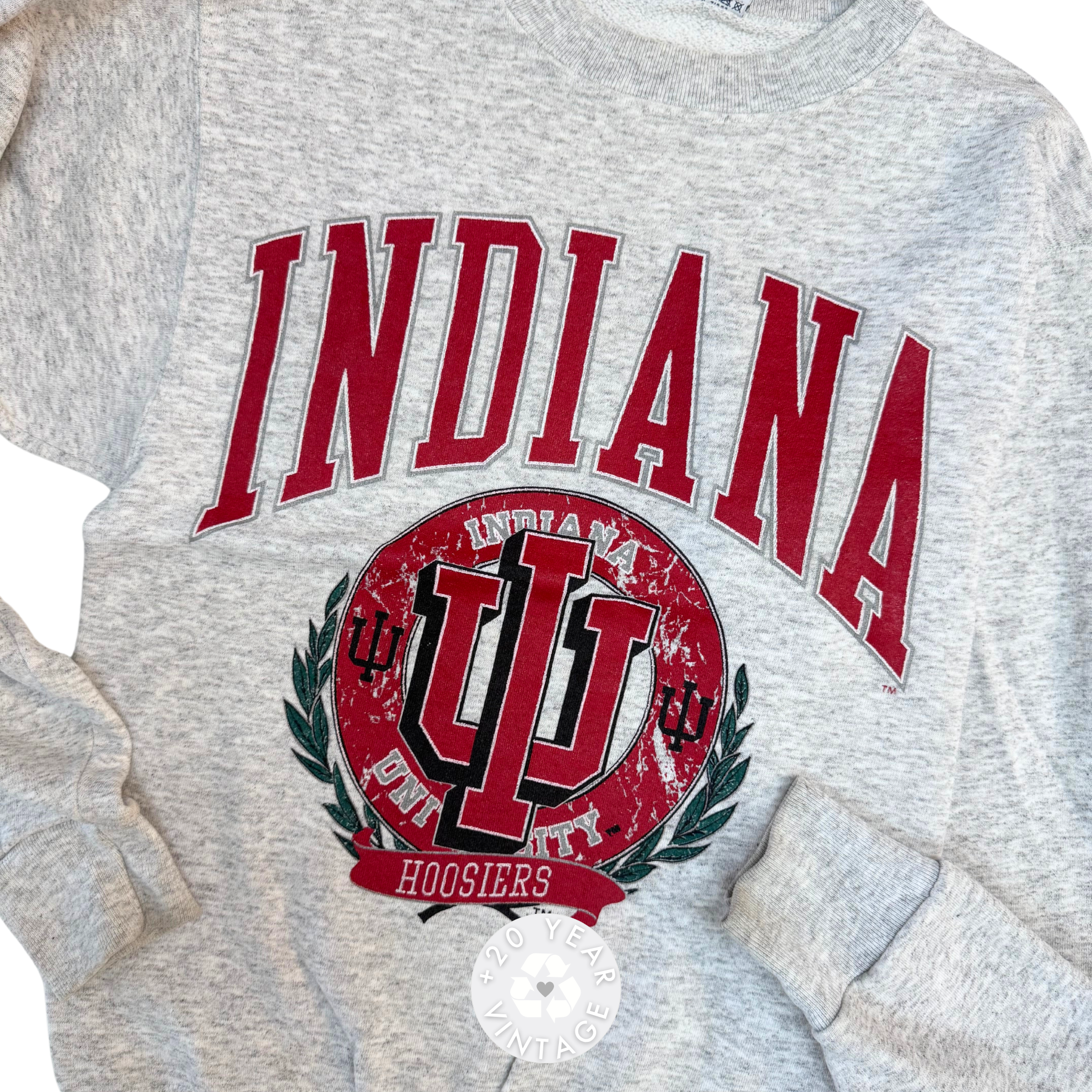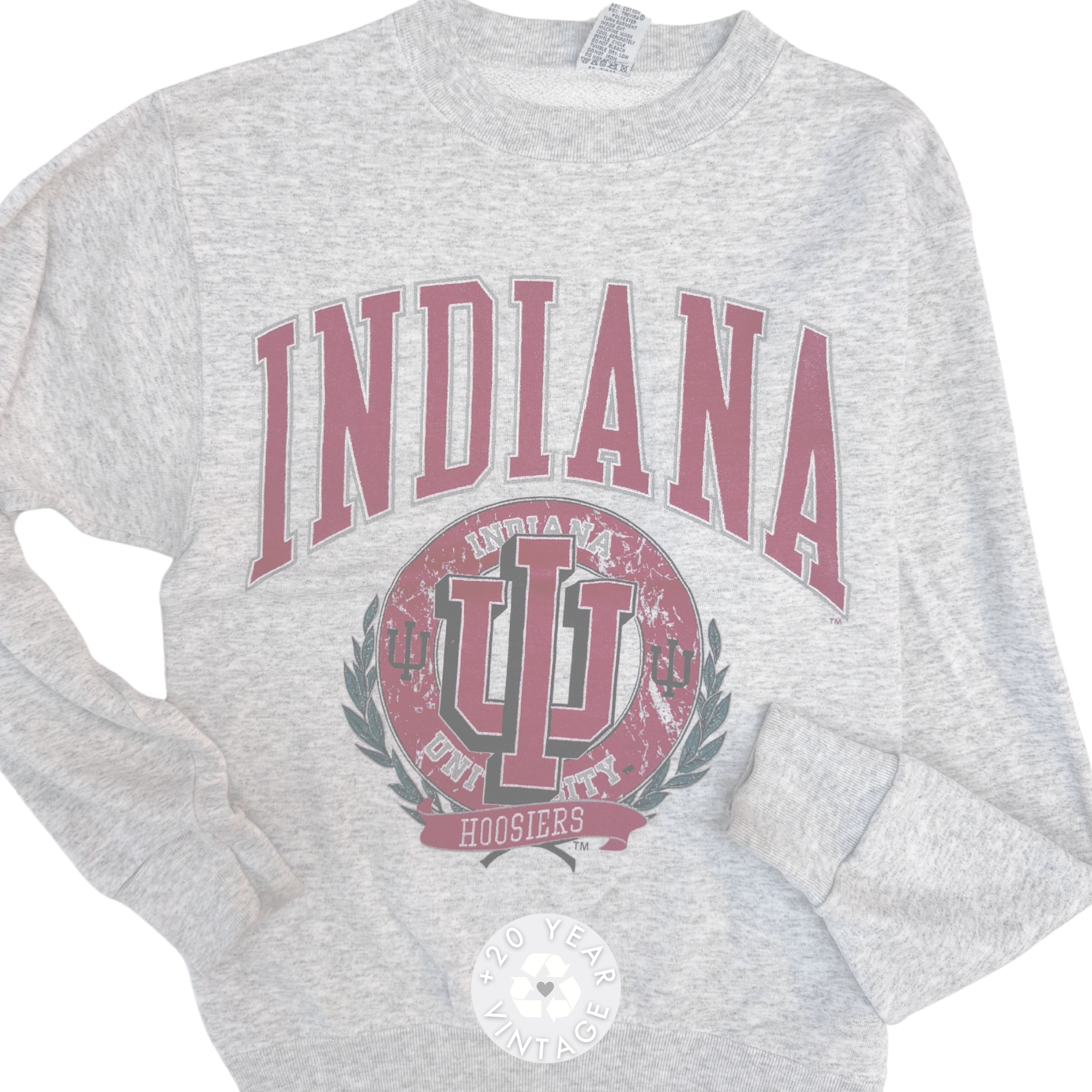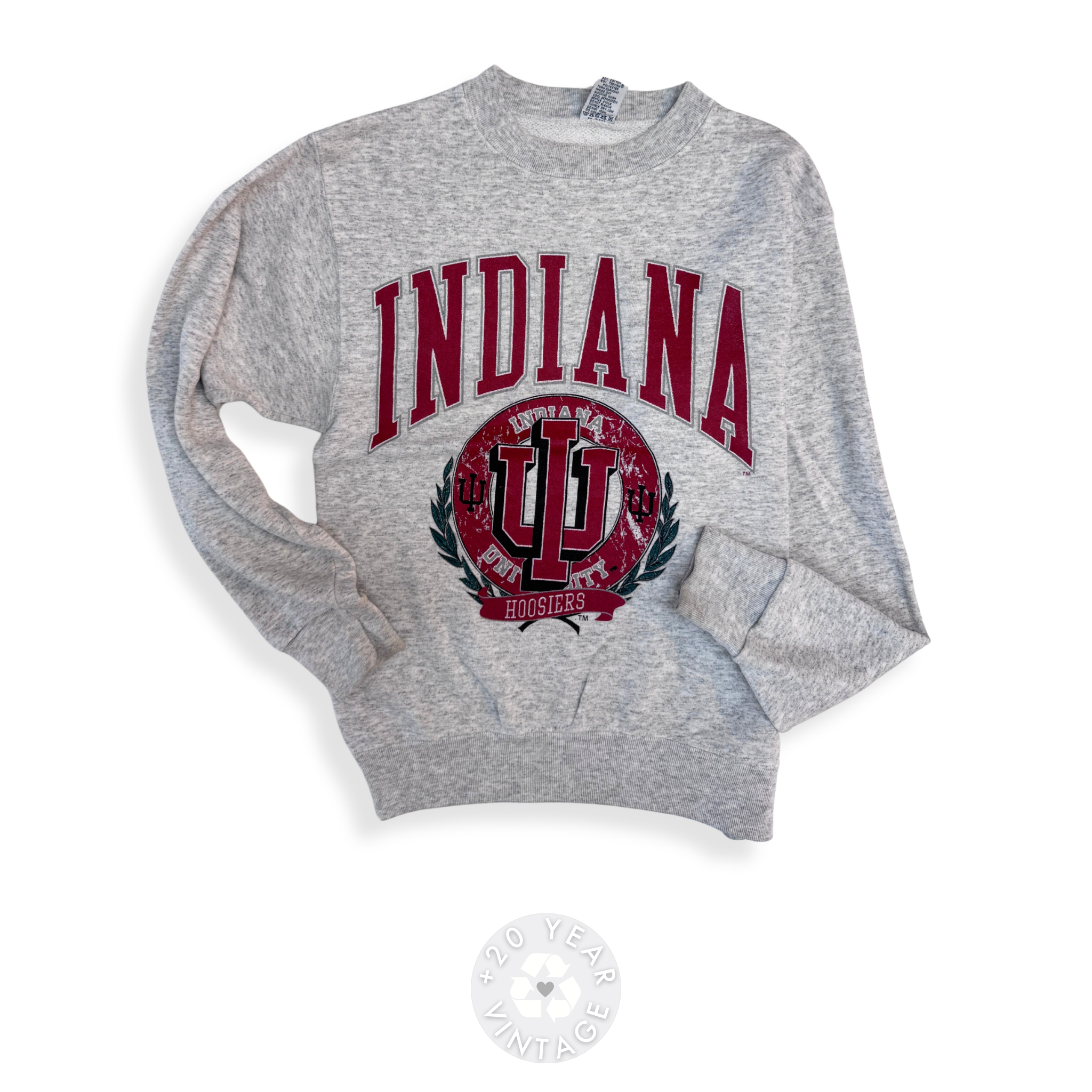 Classic Indiana University graphic crewneck sweatshirt in heather grey. Would fit well up to Large Tag size is Large- Long sleeves Crew neckline Cotton blend Front graphic