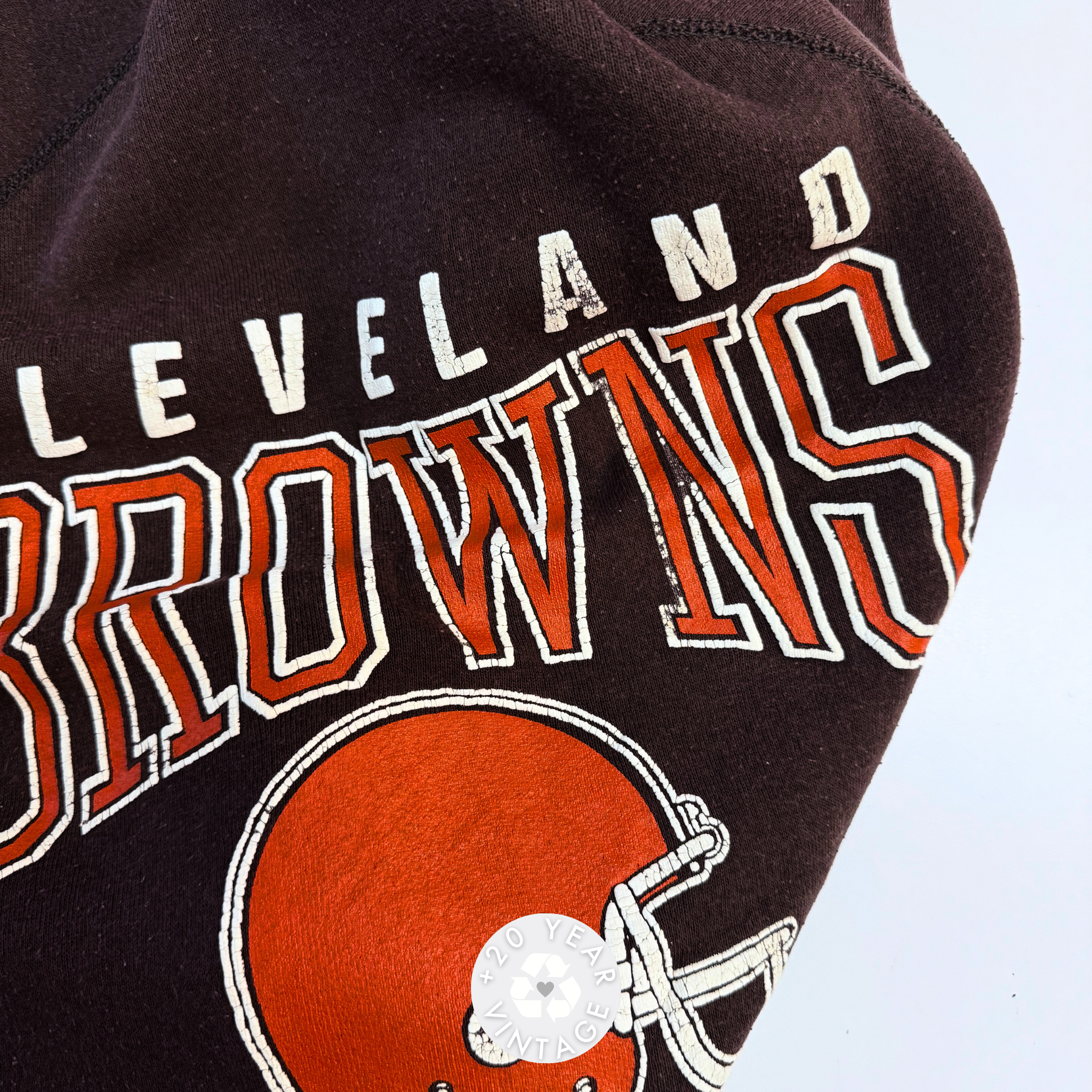 Classic Cleveland Browns pullover sweater featuring bold team lettering and helmet logo on the front. Would fit well up to L